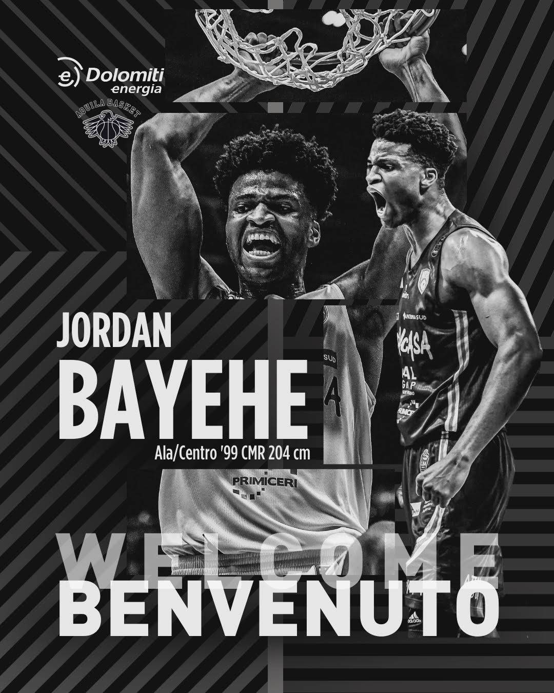 La Dolomiti Energia Trentino comunica di aver raggiunto un accordo biennale con opzione fino al 2027 con Jordan Bayehe. Jordan, classe 1999, è un lungo con grandi doti atletiche, di energia, con una buona mano dal midrange e da 3 punti, ed è un buon difensore.