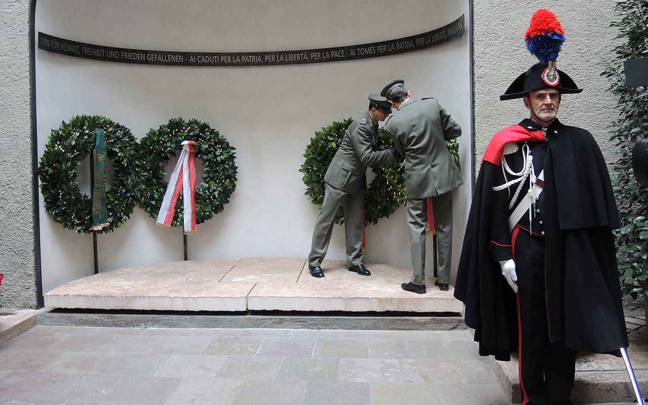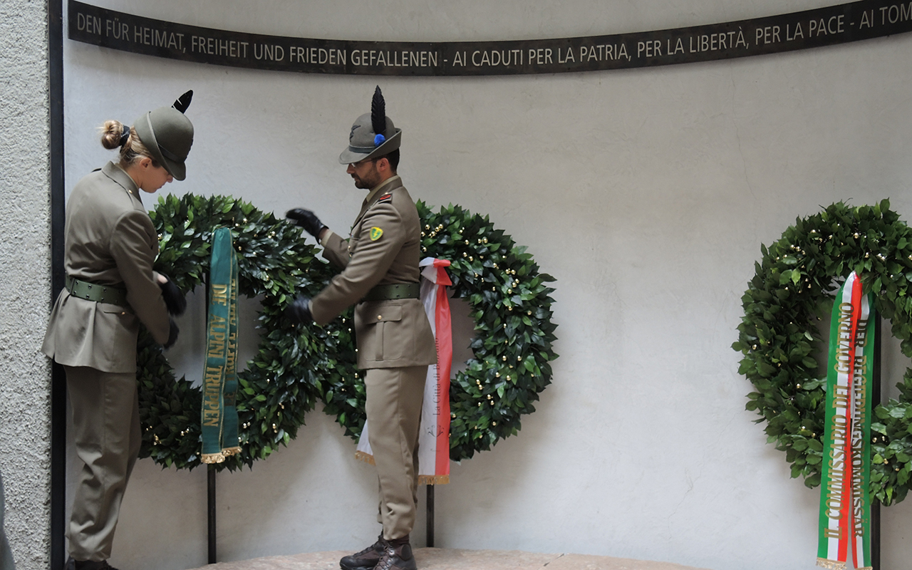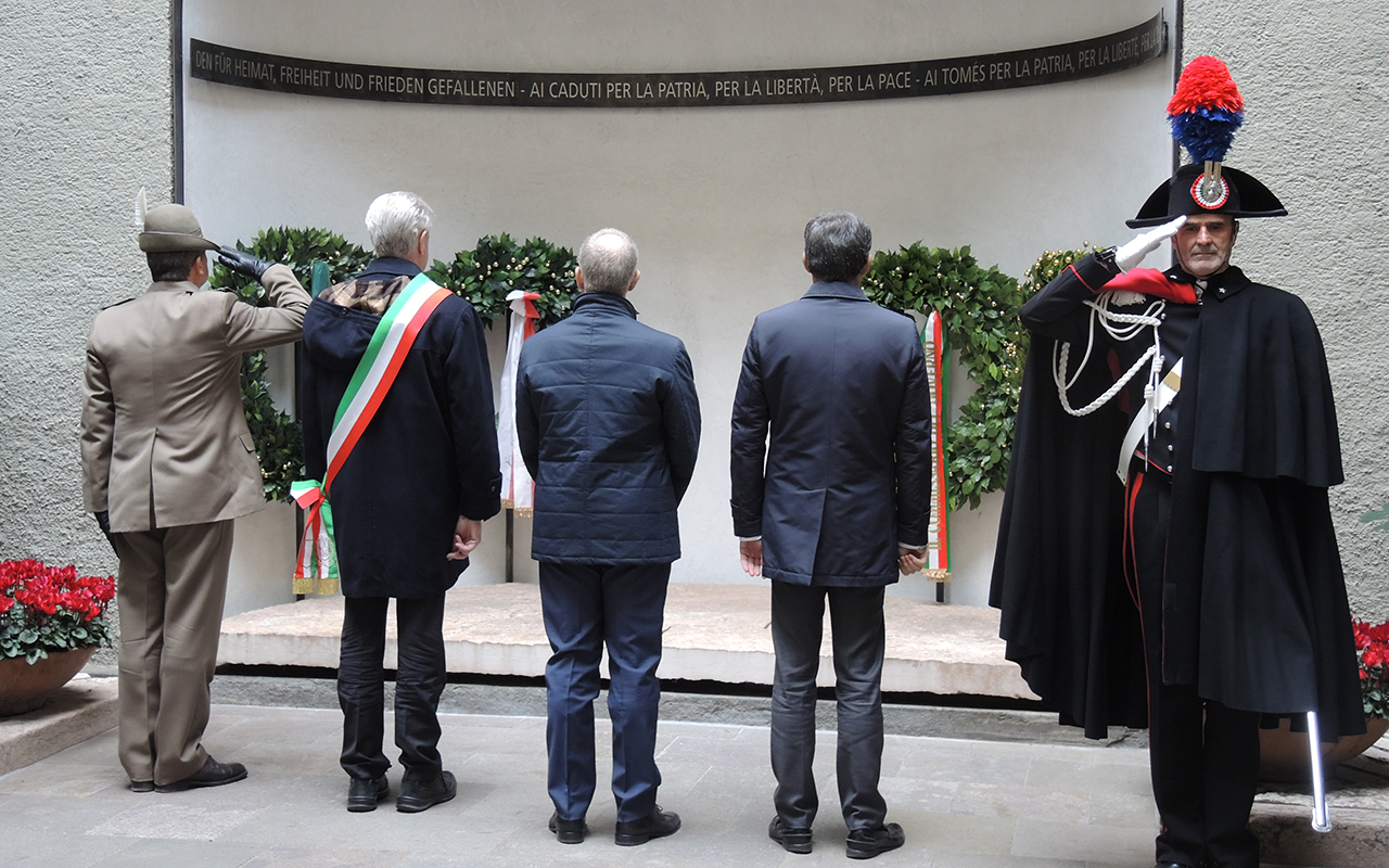 BOLZANO. DEPOSTA UNA CORONA CHE RICORDA I CADUTI DI TUTTE LE GUERRE