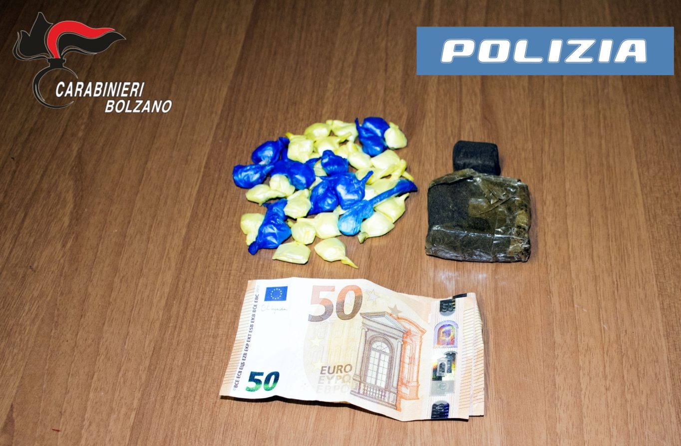 A Bressanone la polizia ha arrestato un cittadino di nazionalità marocchina. L’uomo è stato trovato in possesso di un panetto di hashish del peso di oltre 86 grammi, un involucro contenente 38 dosi di cocaina, già confezionate per lo spaccio al dettaglio, dal peso complessivo di oltre 30 grammi e la somma di 100 euro, ritenuta provento dell’attività illecita. Per lui pronto un Foglio di Via Obbligatorio con divieto di ritorno nel Comune di Bressanone.