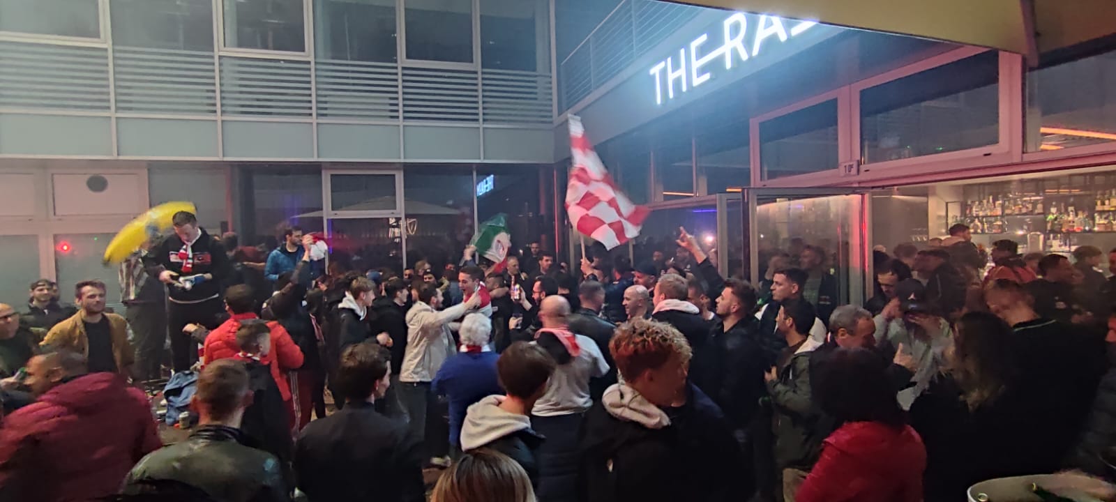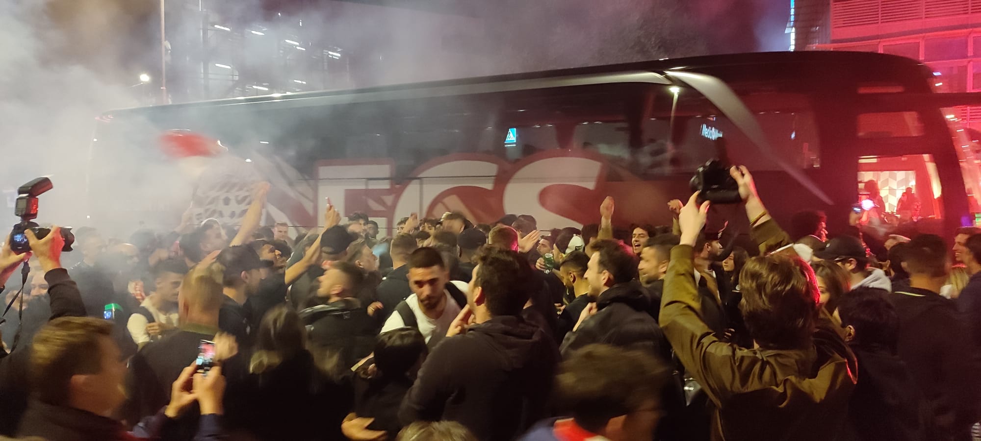 Alle 23 circa il pullman dell’Fc Suedtirol ha fatto rientro a Bolzano dalla lunga trasferta di Trieste ed è stato accolto in via Galilei, davanti al piazzale della Podini Holding, per la festa generale che si è protratta fino a notte fonda presso il locale “The Raum”. La squadra è stata accolta dai tifosi biancorossi rientrati anch’essi dalla città giuliana, dove il Suedtirol aveva battuto la Triestina 2 a 0, e da quanti erano rimasti nel capoluogo altoatesino a tifare attraverso lo schermo gigante posto alla Fiera di Bolzano.