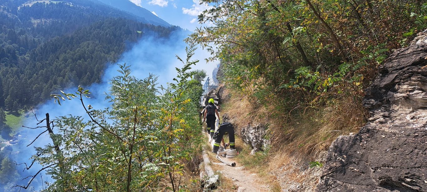 Incendio boschivo verso le 12 sopra Prato allo Stelvio. Sul posto i vigili del fuoco volontari della zona al lavoro per diverse ore per evitare che le fiamme si diffondessero ulteriormente. Per l’approvvigionamento idrico è stato necessario posare tubi lunghi fino a 500 metri. Non ci sono feriti.