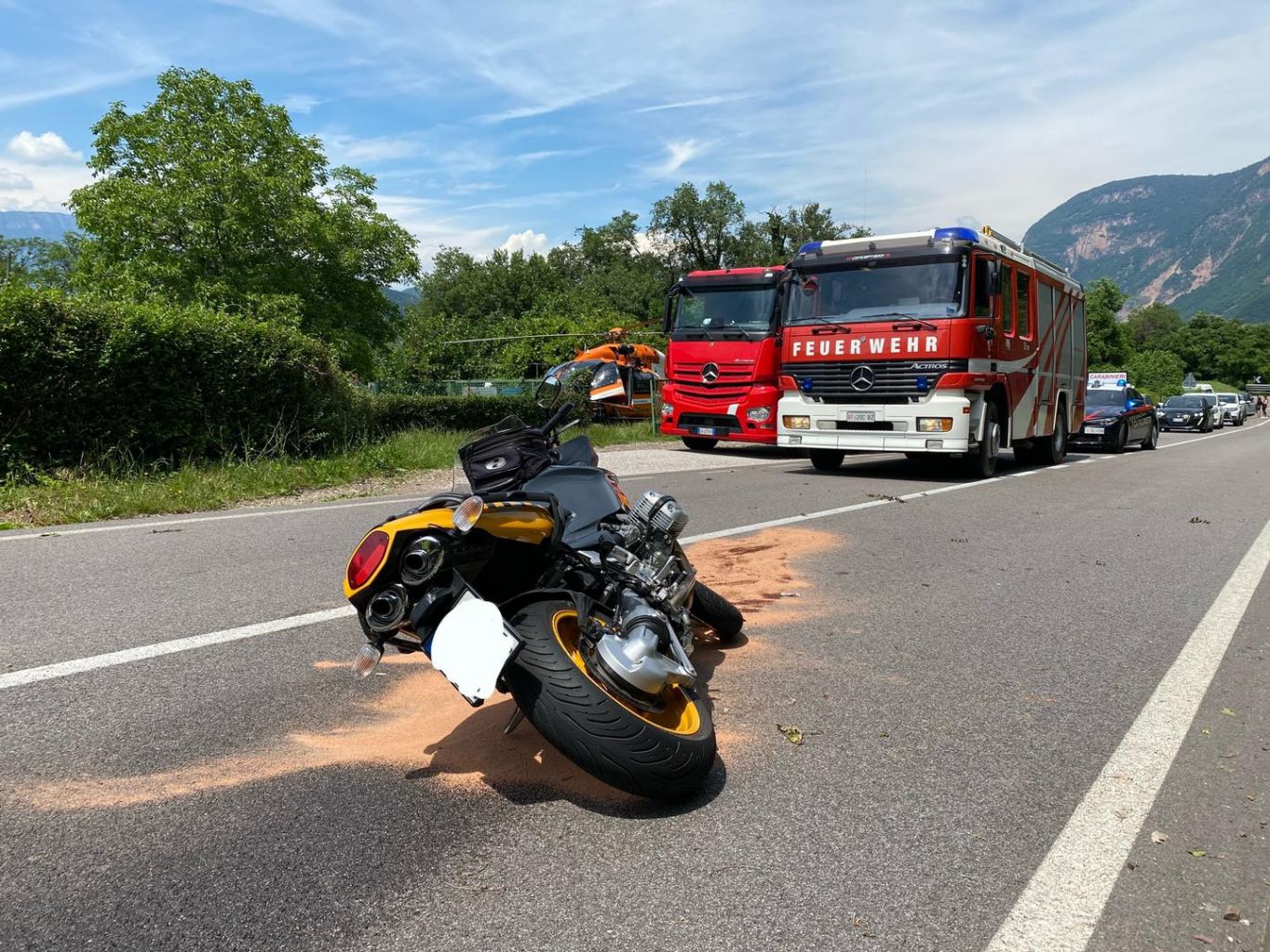 Grave scontro tra due moto sulla statale fiemmese, tra Ora e Montagna. Uno dei due centauri è stato elitrasportato all’ospedale di Bolzano in gravi condizioni, meno gravi le condizioni dell’altro motociclista.