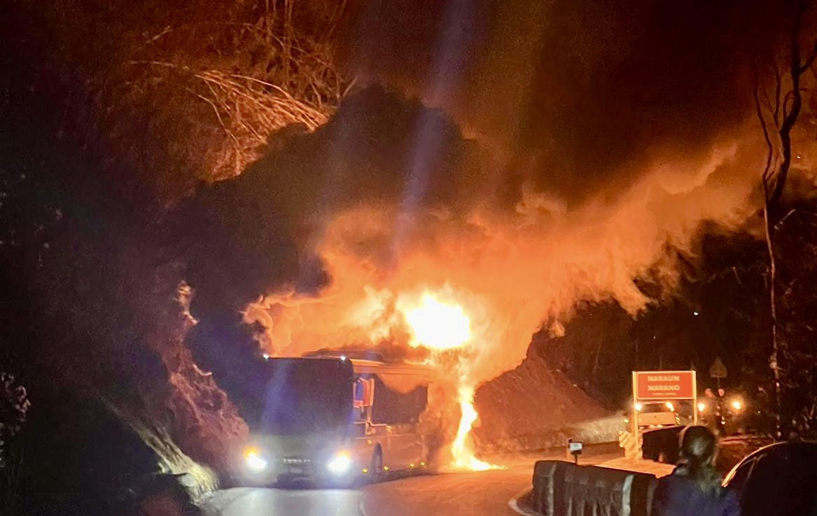BUS IN FIAMME SULLA STRADA DEL PASSO PALADE