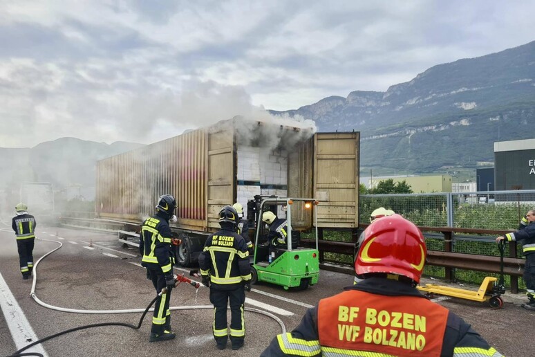 TIR IN FIAMME SULLA A22 AD EGNA