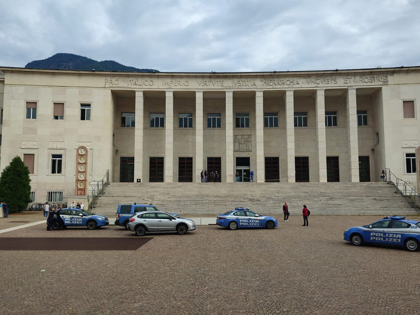 TRIBUNALE DI BOLZANO, RITROVATI UNO ZAINETTO E DEL LIQUIDO INFIAMMABILE