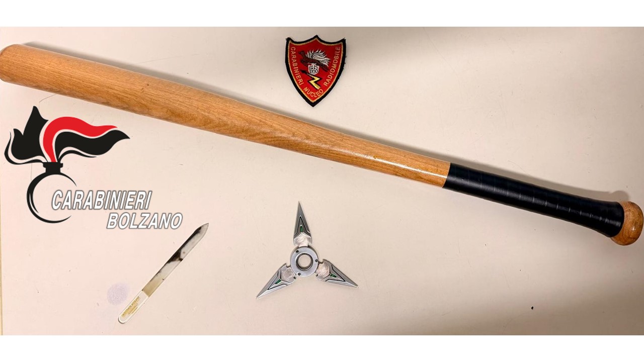 MAZZA DA BASEBALL E STELLA A TRE PUNTE IN AUTO, DENUNCIATO A BRESSANONE