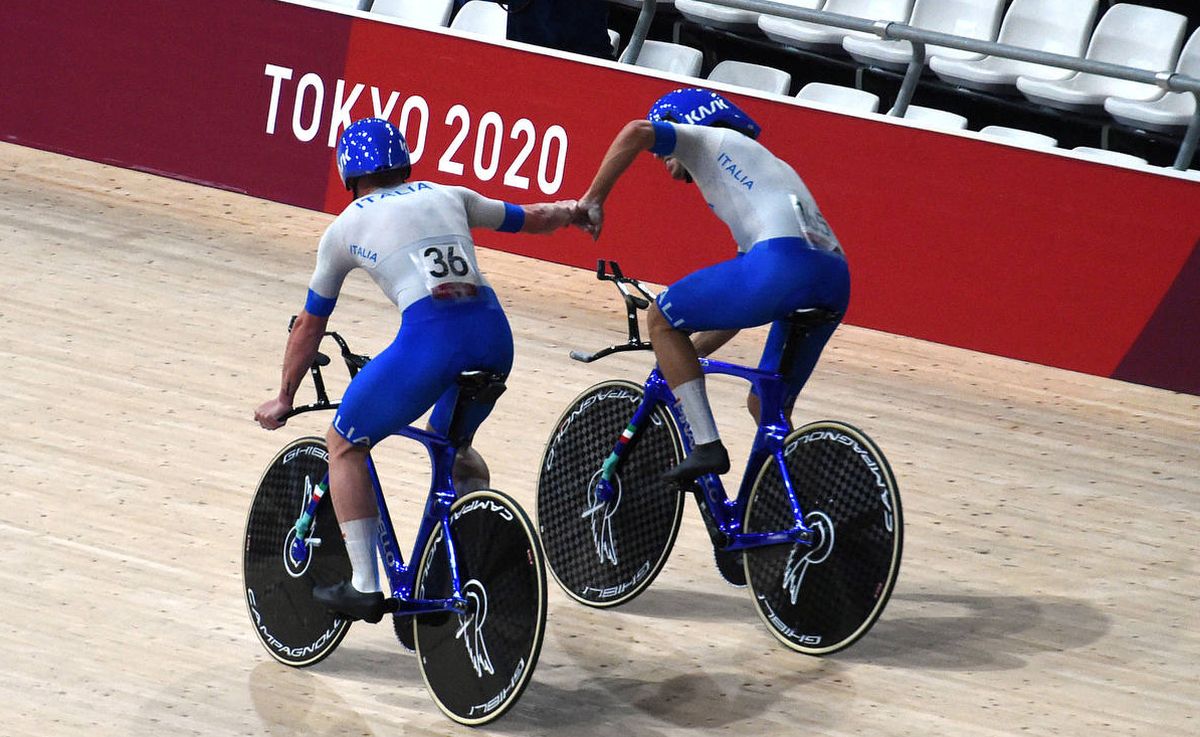 TOKYO (GIAPPONE) (ITALPRESS) – Medaglia d’oro per l’Italia del ciclismo su pista nell’inseguimento di squadre. Gli azzurri (Simone Consonni, Filippo Ganna, Francesco Lamon e Jonathan Milan) hanno battuto la Danimarca. L’Italia ha migliorato ancora il record del mondo realizzato ieri in semifinale, chiudendo in 3’42″032.(ITALPRESS).