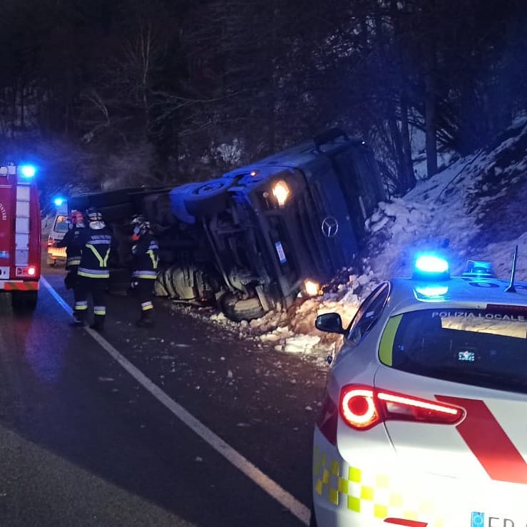 CAMION SBANDA E FINISCE SU UN FIANCO A TIONE. FERITO L’AUTISTA