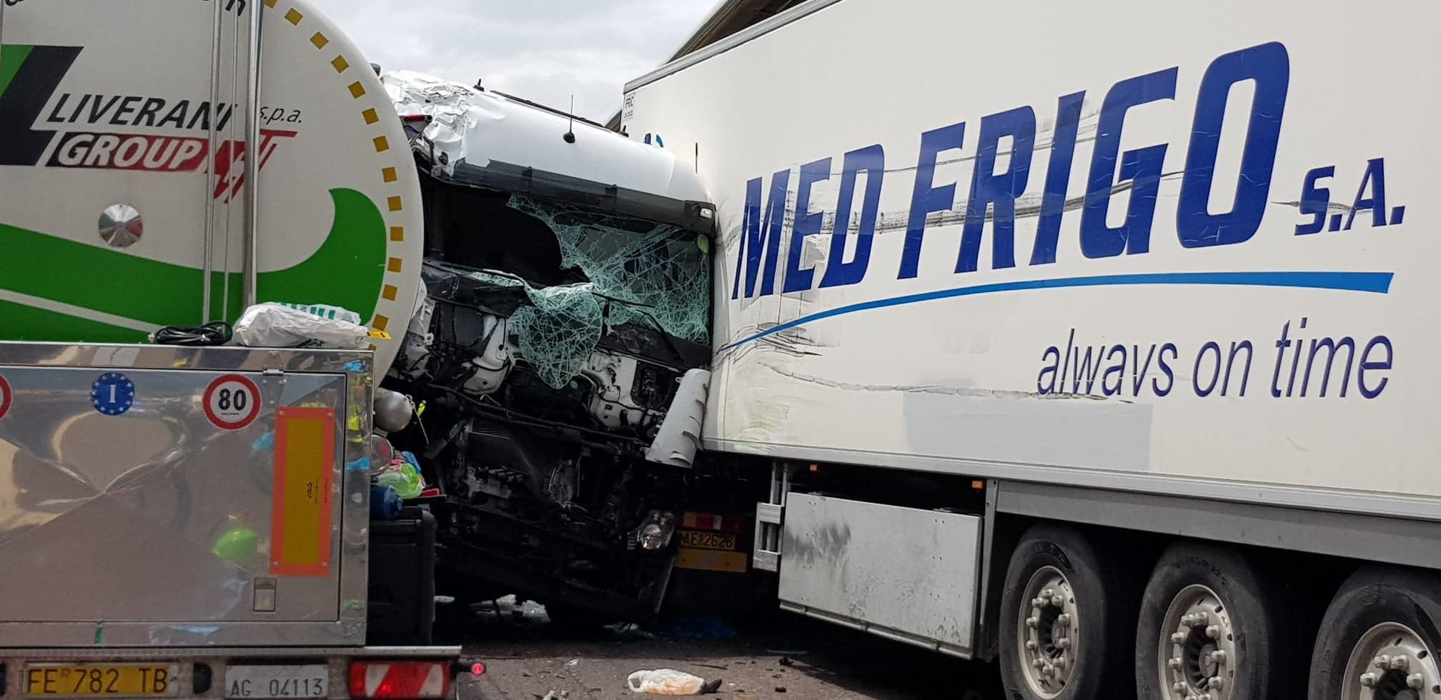 TAMPONAMENTO TRA 3 TIR IN A22
