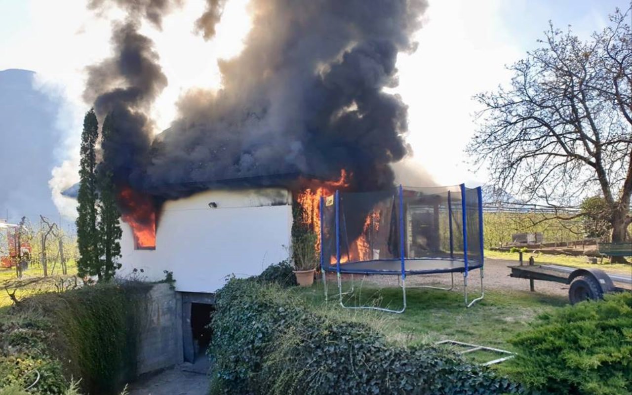 Fiamme anche in una rimessa di mezzi agricoli a Lana. Sul posto sono subito intervenuti i vigili del fuoco. Il rischio era che l’incendio si propagasse alla vicina chiesetta di Sant’Agata Ildegarda, recentemente restaurata. Nessuno è rimasto ferito. [fm] (Foto: vigili del fuoco)