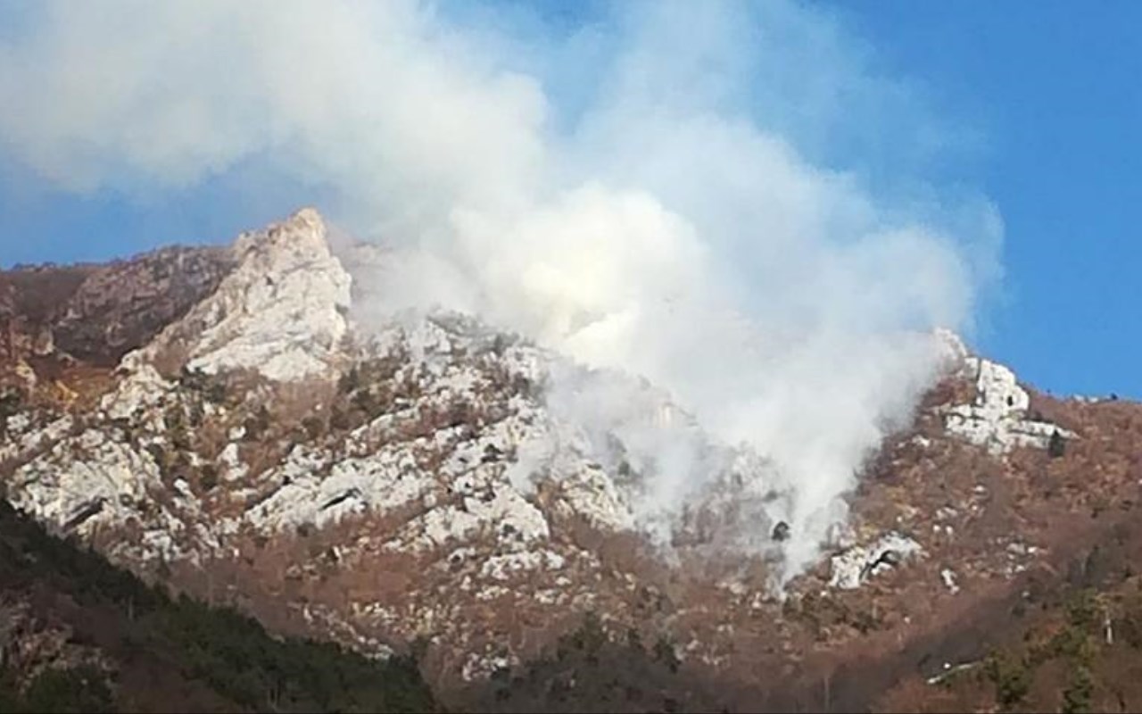 Fiamme nei boschi sopra Molina di Ledro, sul posto sono intervenuti i vigili del fuoco e l’elicottero del nucleo di Trento. Il lavoro di spegnimento è stato complicato dal forte vento e dal terreno particolarmente arido. [fm] [foto: rainews]