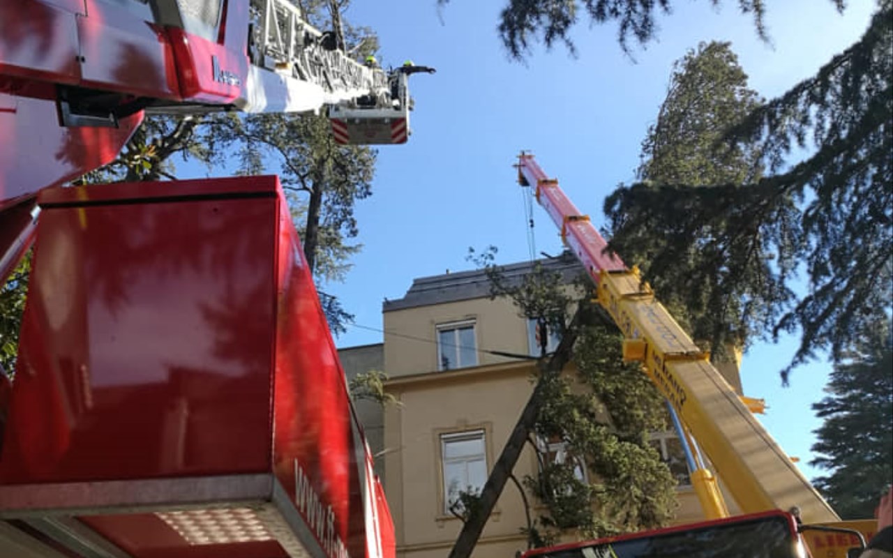 MERANO. ALBERO SRADICATO DAL VENTO FINISCE SULLA CASA DELLA CULTURA
