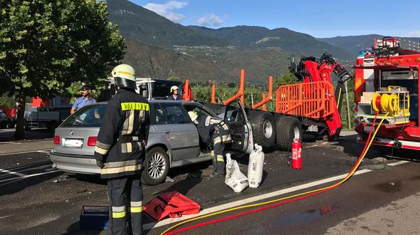 Grave incidente stradale ieri tra Vilpiano e Gargazzone (foto: vigili del fuoco). Un’auto con targa italiana guidata da un 50 enne ha tamponato violentemente un rimorchio parcheggiato a lato della strada. Sul posto i vigili del fuoco volontari di Vilpiano, la Croce Bianca di Terlano e il medico di urgenza, l’uomo è stato trasportato all’ospedale … Continua a leggere