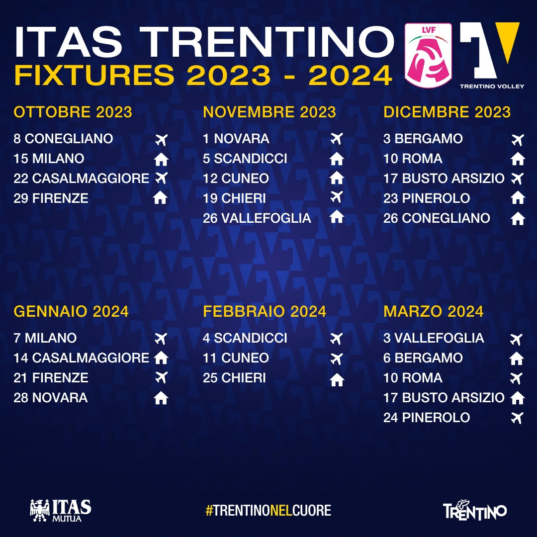 Ufficializzato nella giornata di oggi il calendario del 79° campionato di Serie A1 Femminile. L’Itas Trentino, alla sua prima partecipazione al torneo di Serie A1 dopo la promozione conquistata lo scorso anno grazie alla vittoria dei Playoff Promozione di A2, sarà attesa da un debutto particolarmente stimolante e impegnativo: domenica 8 ottobre, infatti, le gialloblù … Continua a leggere