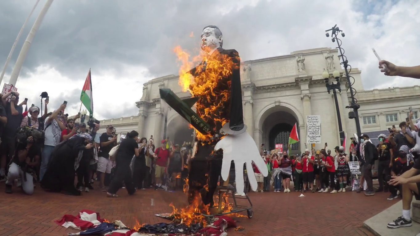 (WASHINGTON) (STATI UNITI) (ITALPRESS) – Mentre il premier Benjamin Netanyahu pronunciava il suo discorso al Congresso di Washington, in città scoppiava il panico per la manifestazione pro Palestina. Manifestanti sono stati arrestati, manichini del premier israeliano sono stati bruciati davanti alla DC Union Station. Dato fuoco anche alle bandiere americane e i monumenti sono stati … Continua a leggere