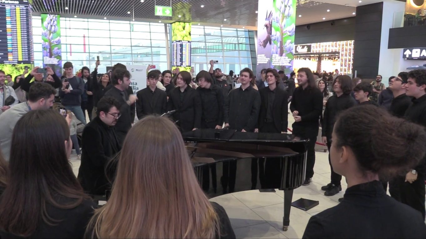 Accademia Santa Cecilia vola a Fiumicino, flash mob di 22 cantanti