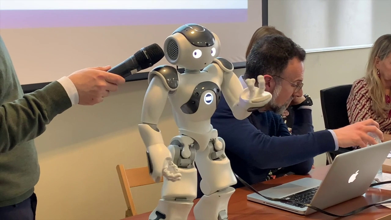 L’interazione tra uomo e Intelligenza Artificiale ha raggiunto una nuova frontiera: la Chat GPT, capace di simulare il linguaggio umano, è stata unita al robot sociale Nao. Il progetto è stato presentato al pubblico all’Università Cattolica di Milano. xh7/fsc/gsl