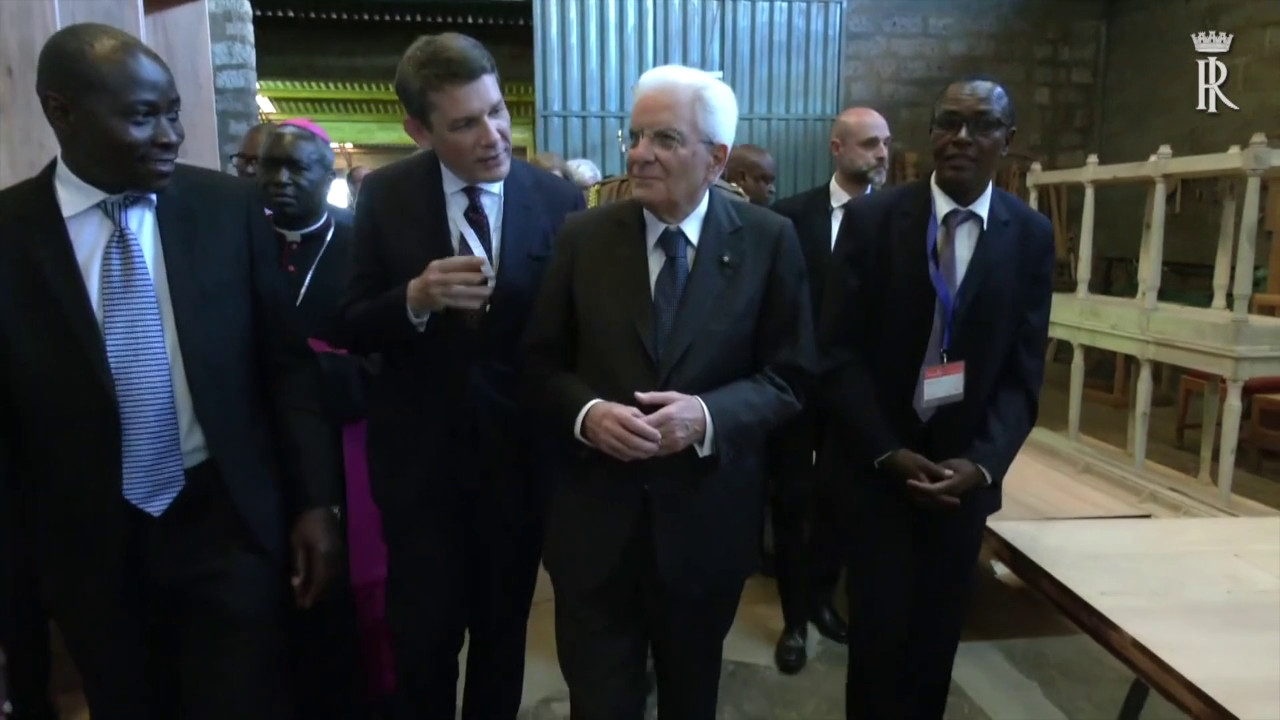 Il presidente della Repubblica Sergio Mattarella, in visita di Stato in Kenya, si è recato presso il Centro di Formazione professionale San Kizito. sat/gsl (Fonte video: Quirinale)