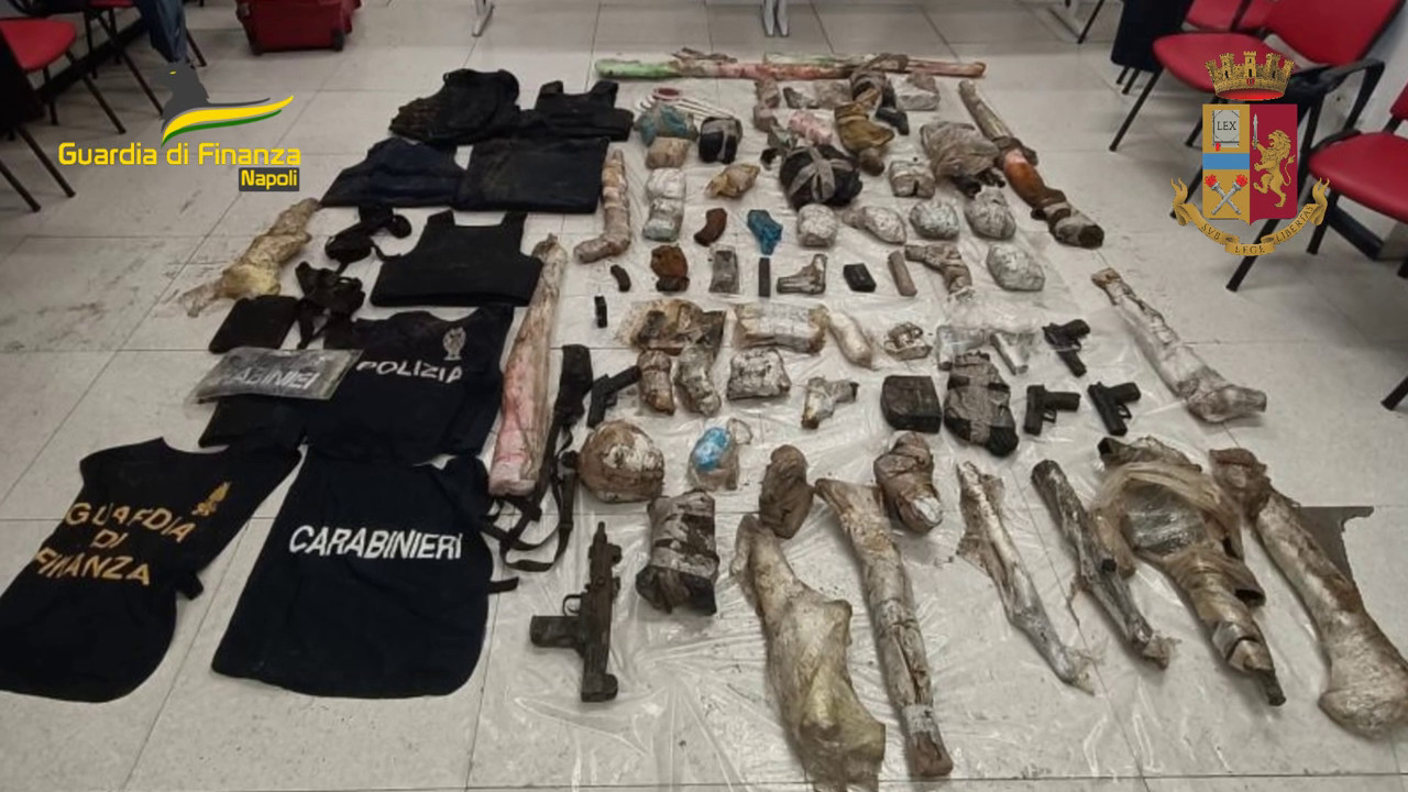 La Polizia e la Guardia di Finanza hanno sequestrato a Giugliano in Campania armi e munizioni riconducibili al sodalizio criminale capeggiato da un noto trafficante di stupefacenti arrestato il 25 marzo 2022. Individuato un vano nascosto al di sotto della pavimentazione del garage appositamente predisposto per la custodia delle armi. gtr/pc/red