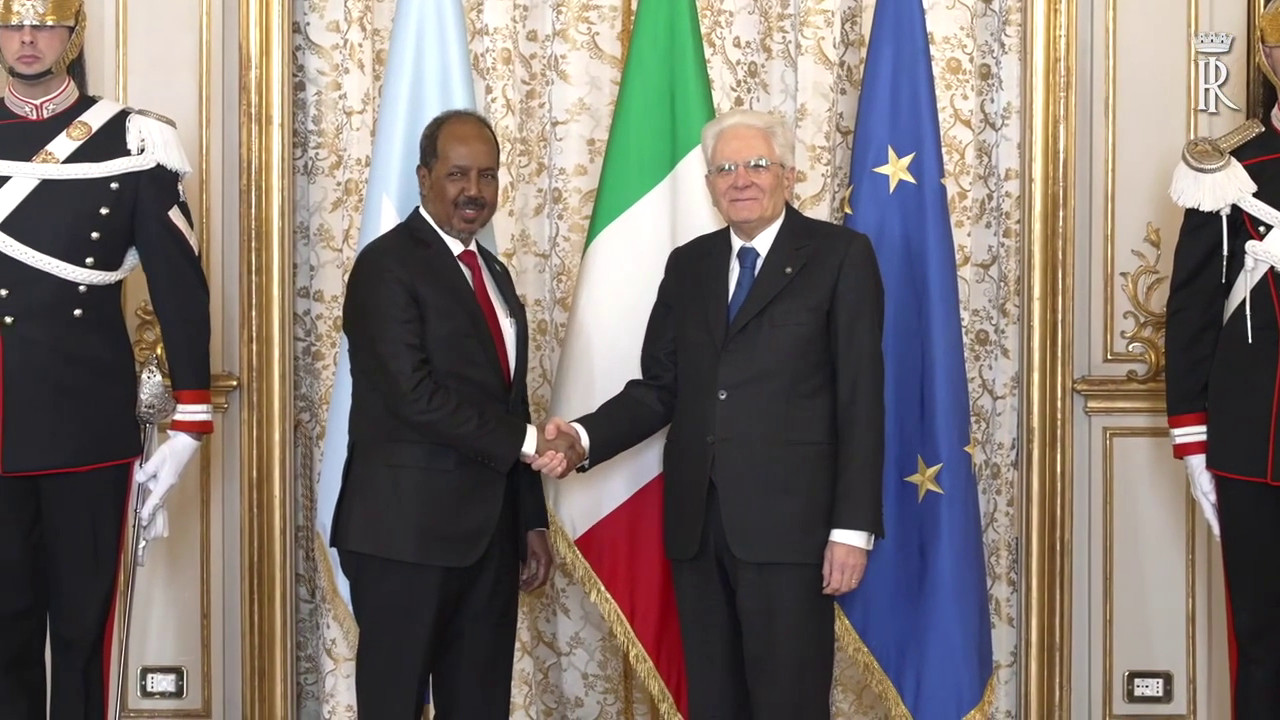 Il presidente della Repubblica, Sergio Mattarella, ha ricevuto al Quirinale il presidente della Repubblica Federale di Somalia, Hassan Sheikh Mohamud, in visita ufficiale. sat/gsl (Fonte video: Quirinale)