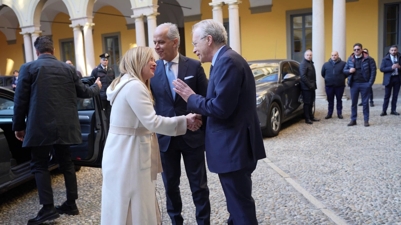 Il presidente del Consiglio Giorgia Meloni, accompagnata dal ministro dell’Interno Matteo Piantedosi, ha incontrato in Prefettura a Milano il sindaco Giuseppe Sala e i vertici delle forze dell’ordine della Città Metropolitana. (fonte video: Palazzo Chigi) fsc/gtr