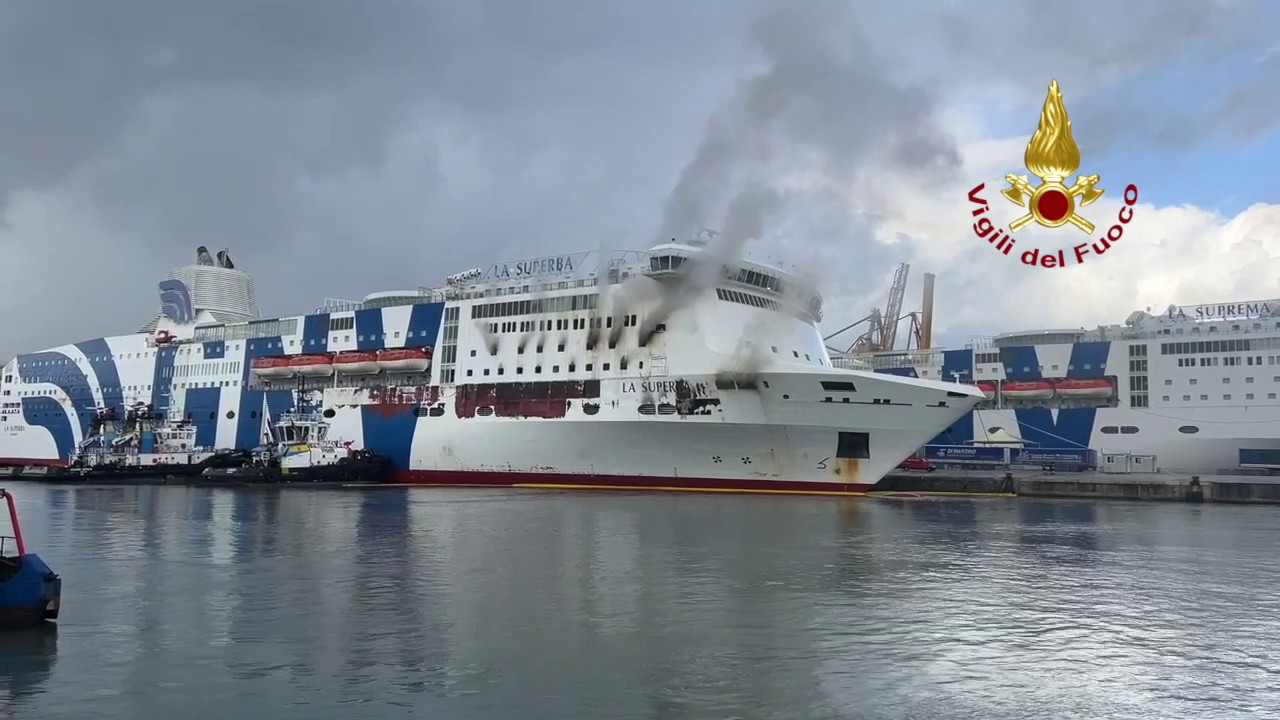 Incendio traghetto Palermo-Napoli, operazioni di raffreddamento