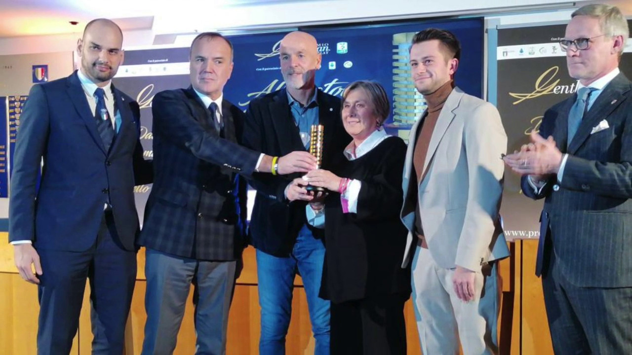 Il tecnico del Milan è stato premiato in Lega B con un riconoscimento in memoria dell’ex allenatore. xh1/gm/gtr
