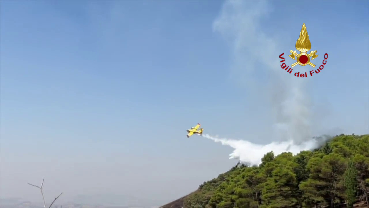 Centotrentasette gli incendi boschivi nelle ultime 24 ore in Sicilia. I Vigili del Fuoco sono intervenuti, supportati dai Canadair per spegnere le fiamme nella zona di Piana degli Albanesi, in provincia di Palermo. pc/gtr