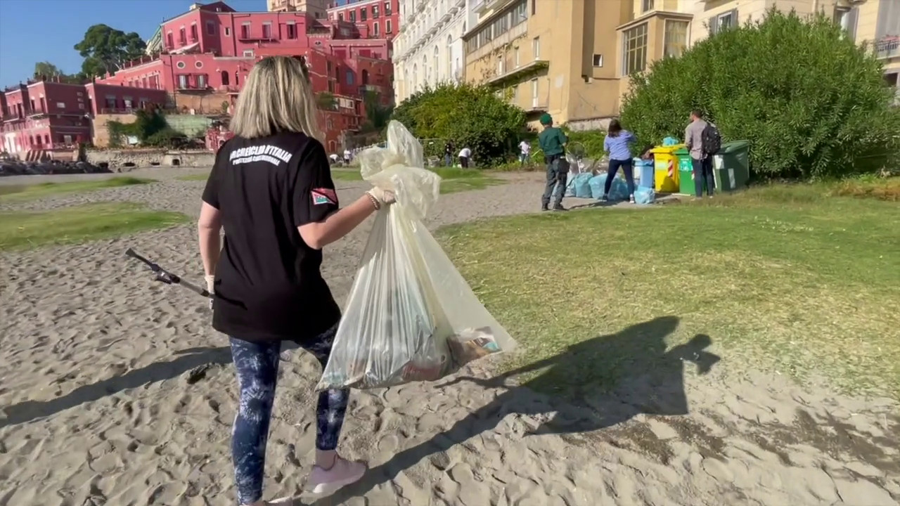 Napoli, giovani e volontari ripuliscono la spiaggia di Posillipo