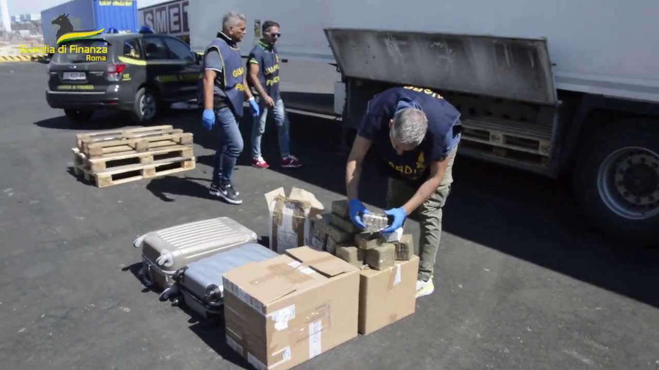 Un carico di oltre 467 chilogrammi di hashish trasportato su un autoarticolato appena sbarcato da Barcellona è stato intercettato al porto di Civitavecchia dai Finanzieri del Comando Provinciale di Roma che hanno arrestato l’autista, uno spagnolo di 56 anni, per l’ipotesi di reato di traffico internazionale di stupefacenti. trl/gsl