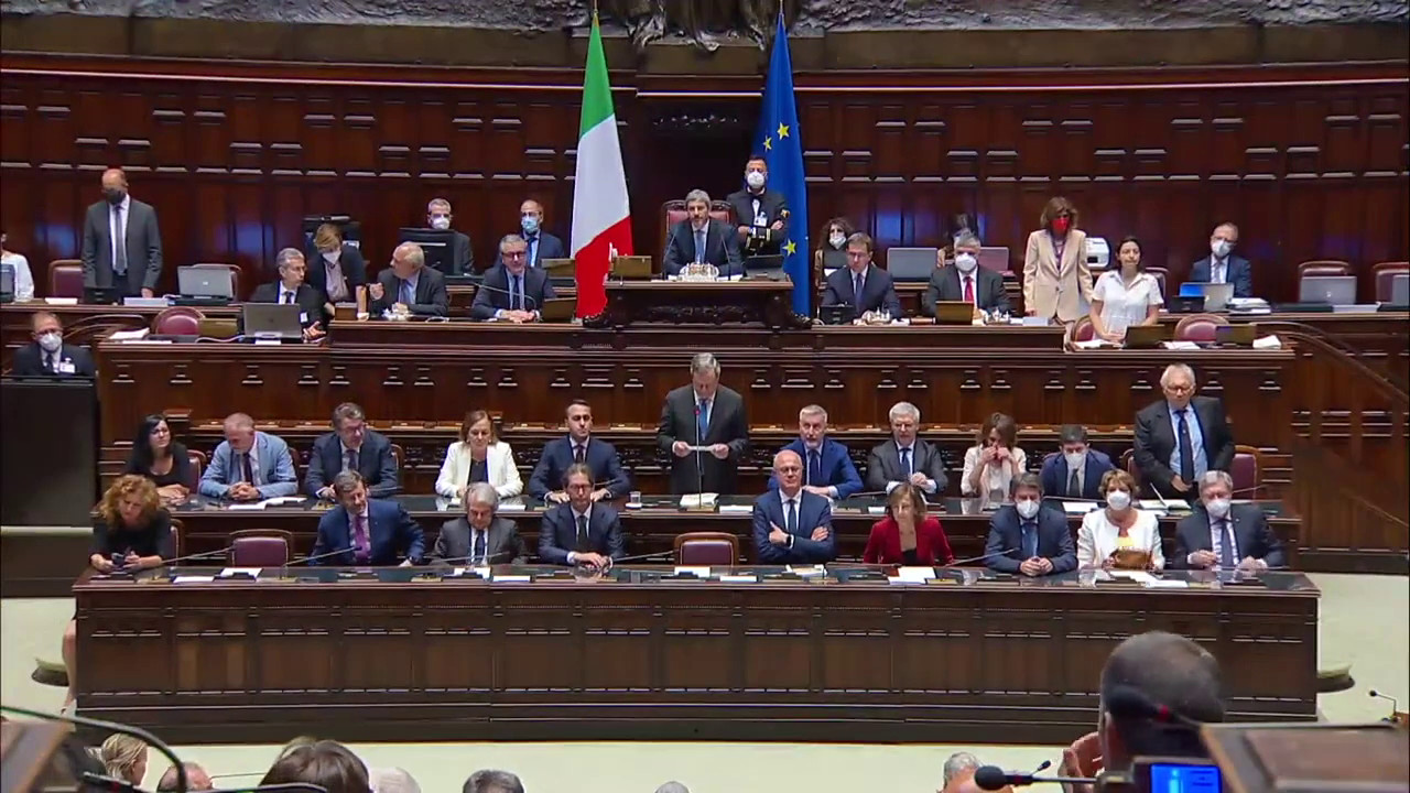 Mario Draghi si è dimesso. Al Senato il suo governo aveva ottenuto la fiducia con soli 95 voti favorevoli e l’assenza dall’Aula di Lega, Forza Italia e MoVimento 5 Stelle. Il premier si è recato alla Camera per brevi comunicazioni, prima di rassegnare le sue dimissioni al presidente della Repubblica Sergio Mattarella. sat/gsl