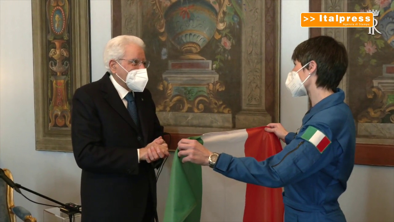 Il presidente della Repubblica, Sergio Mattarella, ha ricevuto questa mattina al Quirinale l’astronauta dell’ESA Samantha Cristoforetti e i vertici delle Agenzie Spaziali Europea e Italiana. Il capo dello Stato ha consegnato il Tricolore che Cristoforetti porterà a bordo della Stazione Spaziale Internazionale, sat/gtr (fonte video: Presidenza della Repubblica)