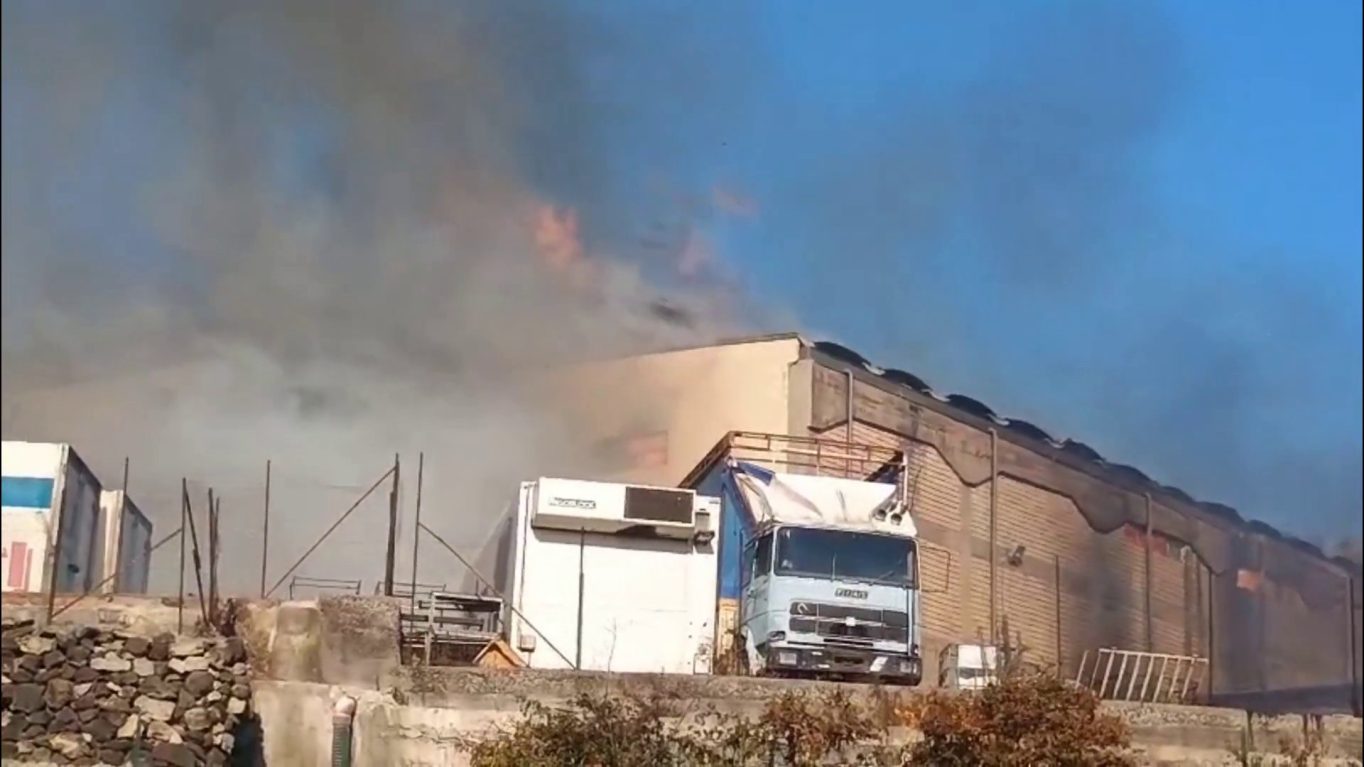 A fuoco due capannoni nel catanese, le immagini dell’incendio