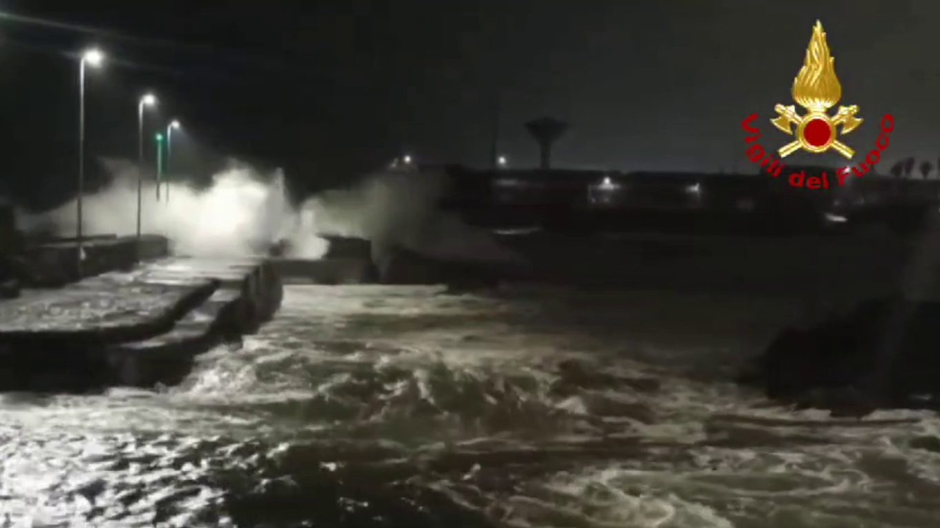CATANIA (ITALPRESS) – Il maltempo non concede tregua in Sicilia. Nel borgo catanese di San Giovanni li Cuti le forti mareggiate hanno fatto crollare parte di un molo. Sul posto i Vigili del fuoco. abrt/gtr Fonte video: Vigili del Fuoco di Catania