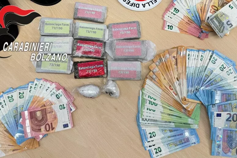 La successiva perquisizione, effettuata con il supporto dell’Aliquota Radiomobile di Egna, ha permesso di rinvenire circa un chilogrammo di hashish suddiviso in dieci panetti, 52 grammi di cocaina e 600 euro in contanti. L’ispezione è stata poi estesa al domicilio di uno degli indagati, dove sono stati sequestrati ulteriori 7.000 euro in contanti. Secondo le stime dell’Arma, lo stupefacente avrebbe fruttato sul mercato nero circa 22.000 euro, con l’immissione al dettaglio di circa 5.250 dosi complessive tra hashish e cocaina. I due soggetti sono stati trasferiti presso la casa circondariale di Bolzano a disposizione dell’Autorità Giudiziaria.