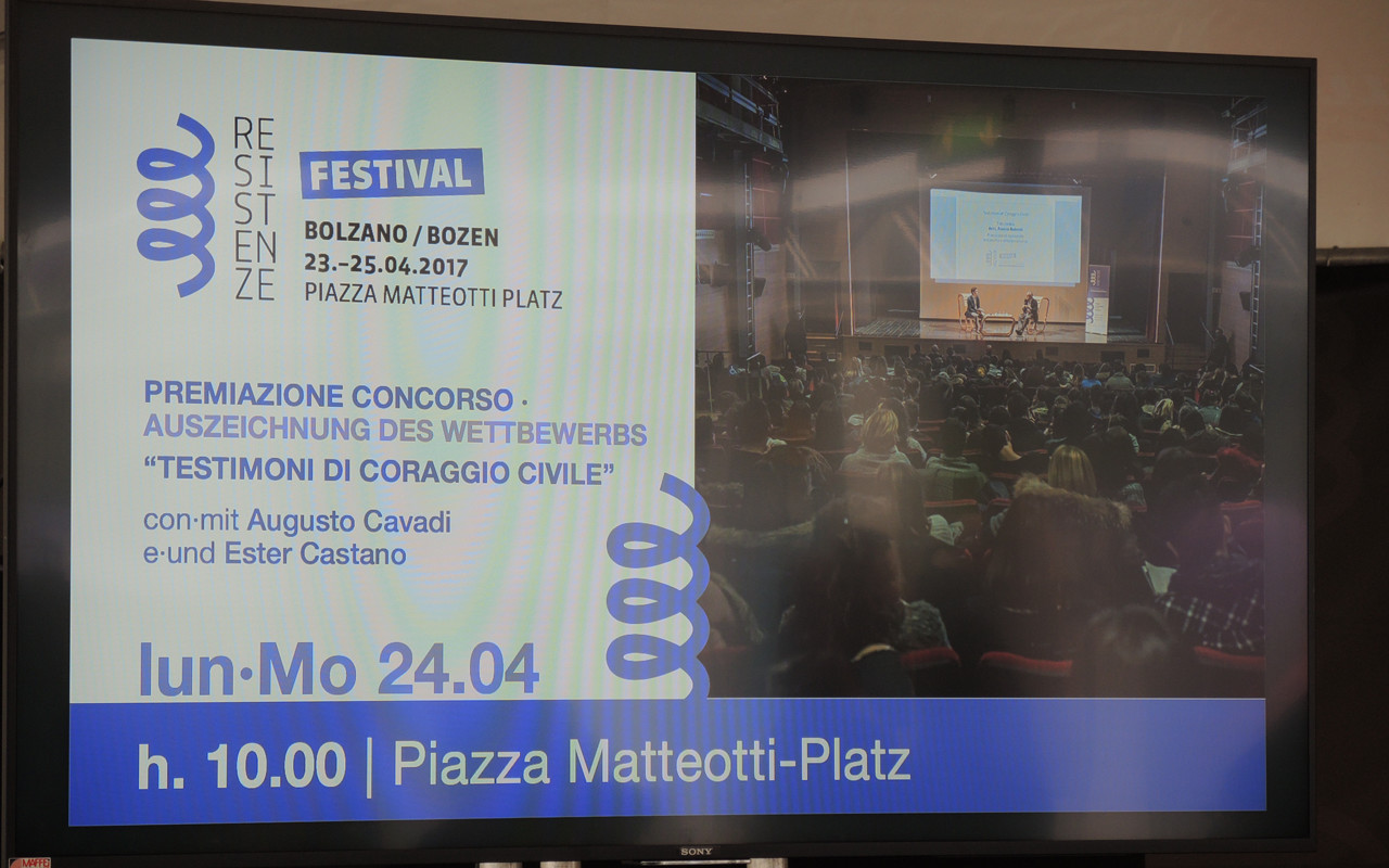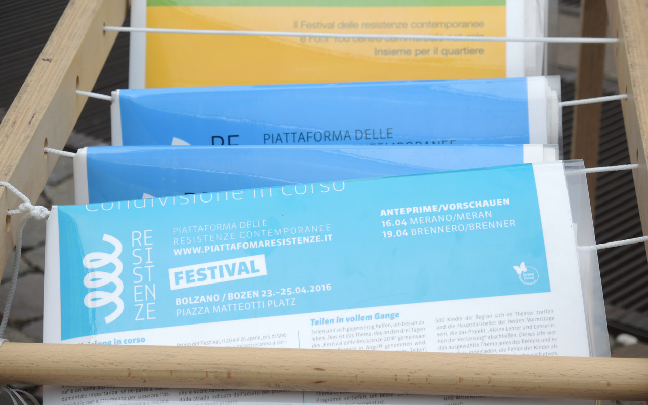 L’attore Paolo Rossi è stato ieri sera il grande protagonista della settima edizione del Festival delle Resistenze contemporanee. Rossi ha parlato del suo progetto di teatro popolare con attori over 65 non professionisti, una iniziativa nata in collaborazione con il teatro stabile di Bolzano. Stamane, anche in presenza di 300 ragazzi, si è parlato di legalità e criminalità organizzata. Oggi il programma prevede gli interventi della scrittrice Isabella Bossi Fedrigotti e del cantautore Vinicio Capossela ma Paolo Florio addetto stampa della manifestazione…