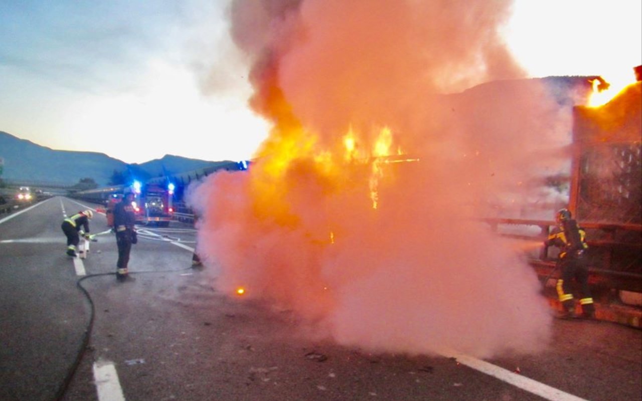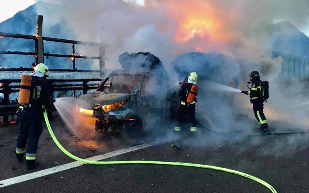 FURGONE IN FIAMME IN A22 TRA EGNA E BOLZANO