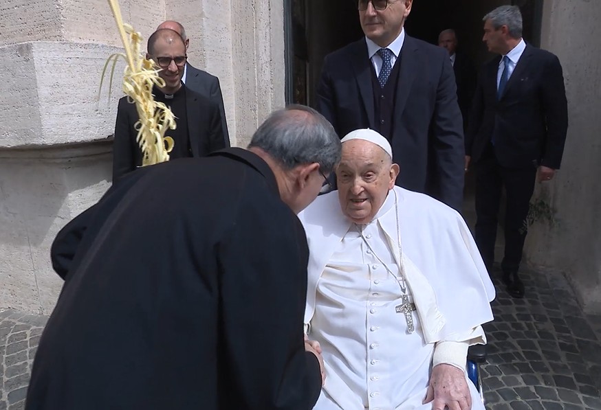 Il Pontefice, che già ieri era stato a sorpresa a Santa Maria Maggiore per una preghiera, è giunto in piazza in sedia a rotelle, ma senza i naselli per l’ossigeno, e prima e dopo aver preso la parola ha salutato numerosi fedeli in piazza.