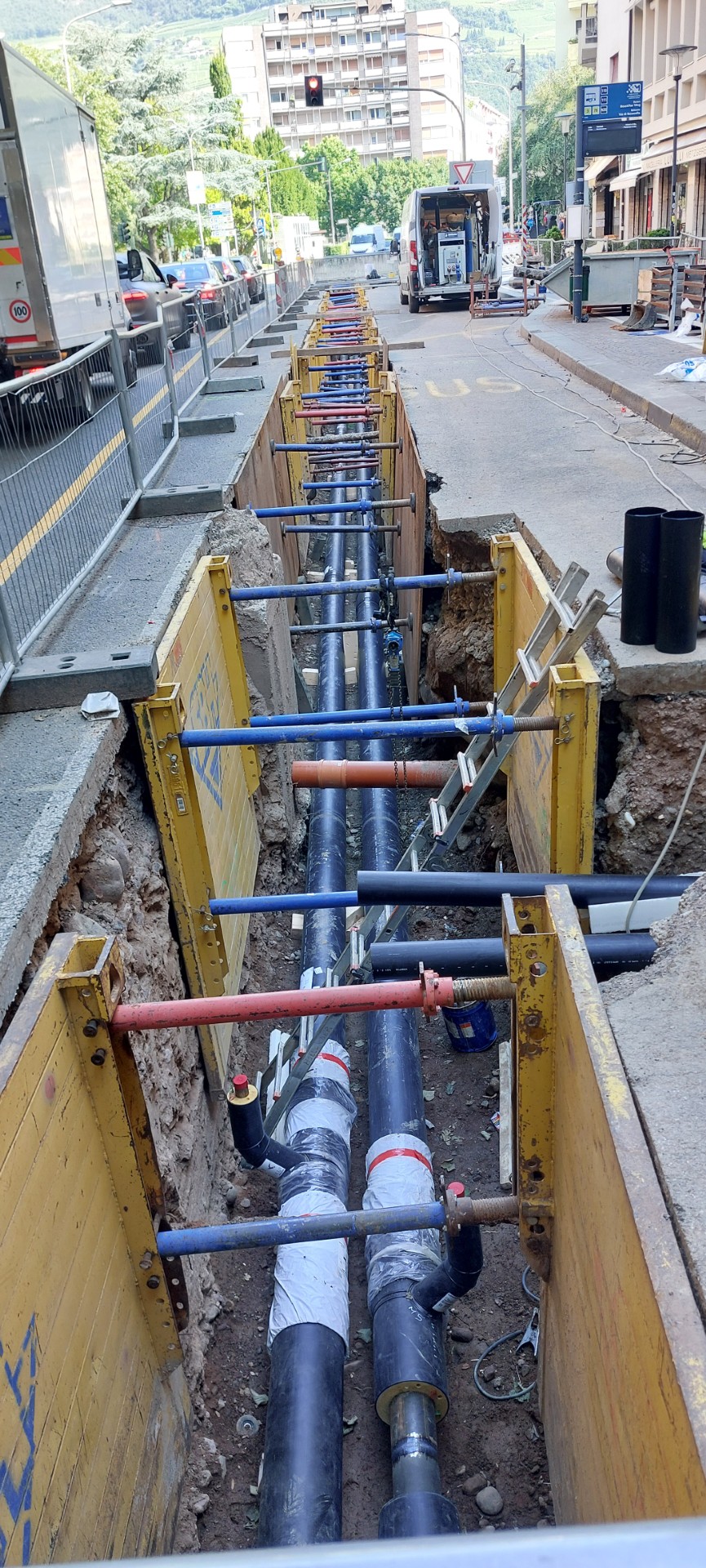 A partire dal 30 giugno prenderanno avvio i lavori per la posa del nuovo acquedotto e del canale delle acque bianche in via Roma, con partenza da via Novacella e prosecuzione fino a corso Italia, attraversando piazza Adriano e viale Druso. Le nuove infrastrutture saranno posate accanto alla rete di teleriscaldamento.