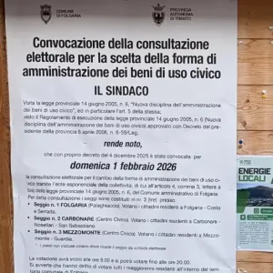 Folgaria domenica andrà al voto per il referendum sugli ‘usi civici’, dopo che un apposito comitato aveva promosso incontri e raccolto le firme necessarie per la consultazione popolare. Si potrà votare tra le 8 e le 20, in tre seggi: al palaghiaccio di Folgaria, al Centro civico di Carbonare e al Centro civico di Mezzomonte. … Continua a leggere