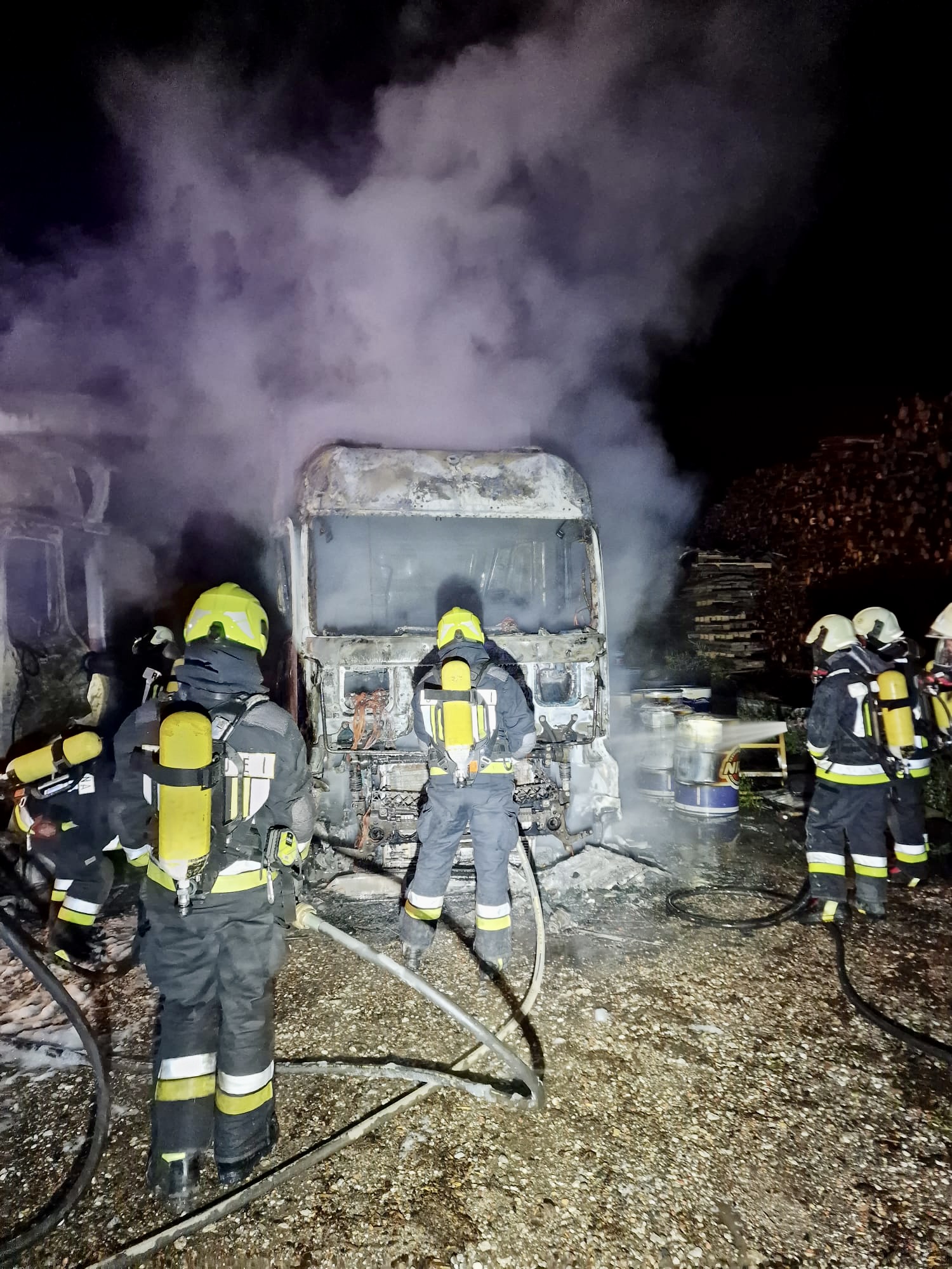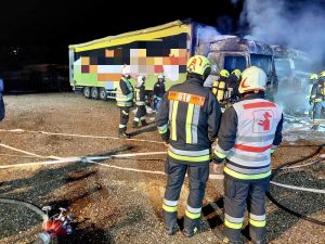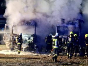 Distrutti due camion dalle fiamme