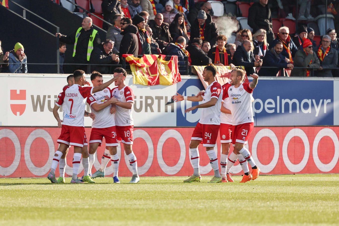 Finisce 2-1 tra Fc Suedtirol e Catanzaro il match valido per la 22/a giornata di campionato allo stadio Druso di Bolzano. Quarto successo consecutivo per la formazione di Fabrizio Castori. Vantaggio dei padroni di casa al 3′ con la rete su gran tiro di Karim Zedadka, al primo centro stagionale. Il pareggio della formazione ospite arriva tre minuti dopo con una verticalizzazione a centro campo, il passaggio filtrante di Pietro Iemello su un lanciato Filippo Pittarello che complice una leggera deviazione di Hamza El Kaouakibi, mette alle spalle di un incolpevole Marius Adamonis.