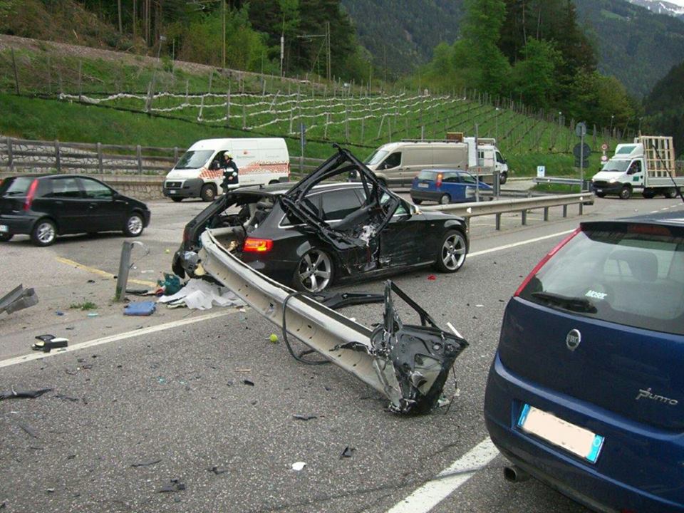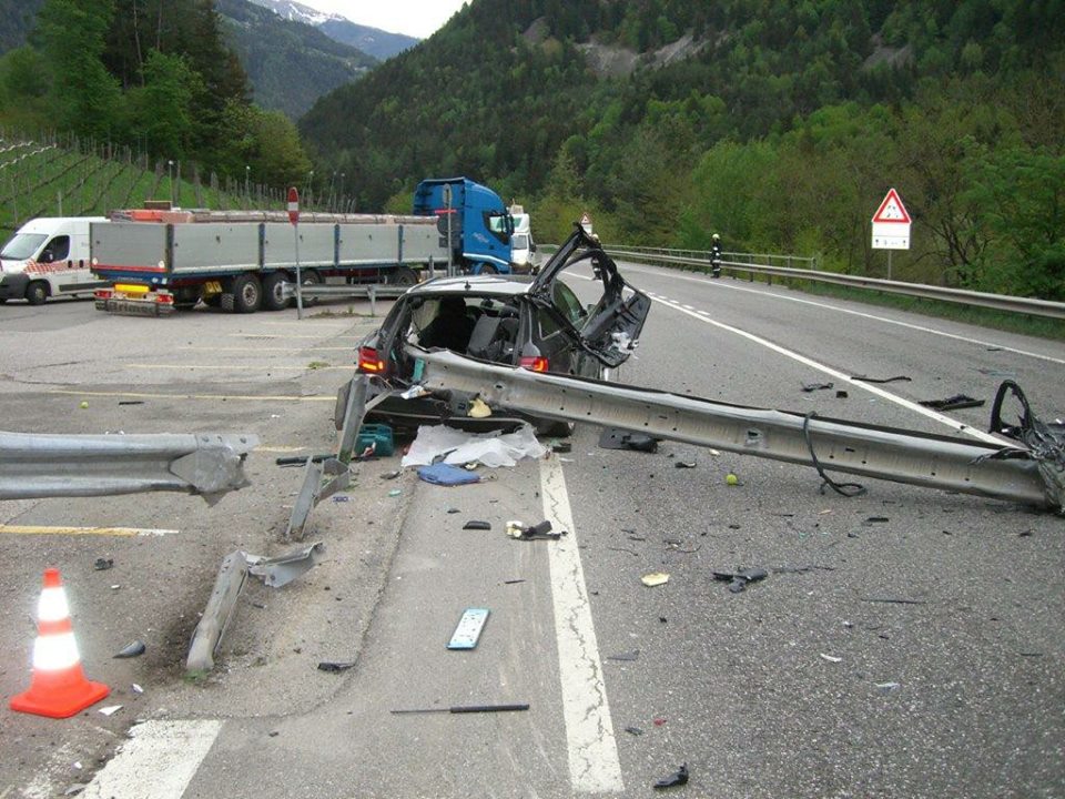 STATALE DELLA PUSTERIA. AUTO INFILZATA DA GUARD RAIL, AUTOMOBILISTA MIRACOLATO
