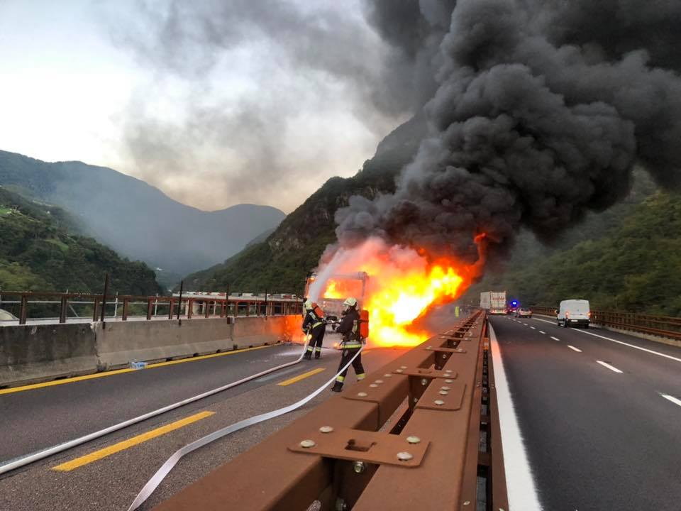 TIR IN FIAMME SULLA A22. PESANTI DISAGI