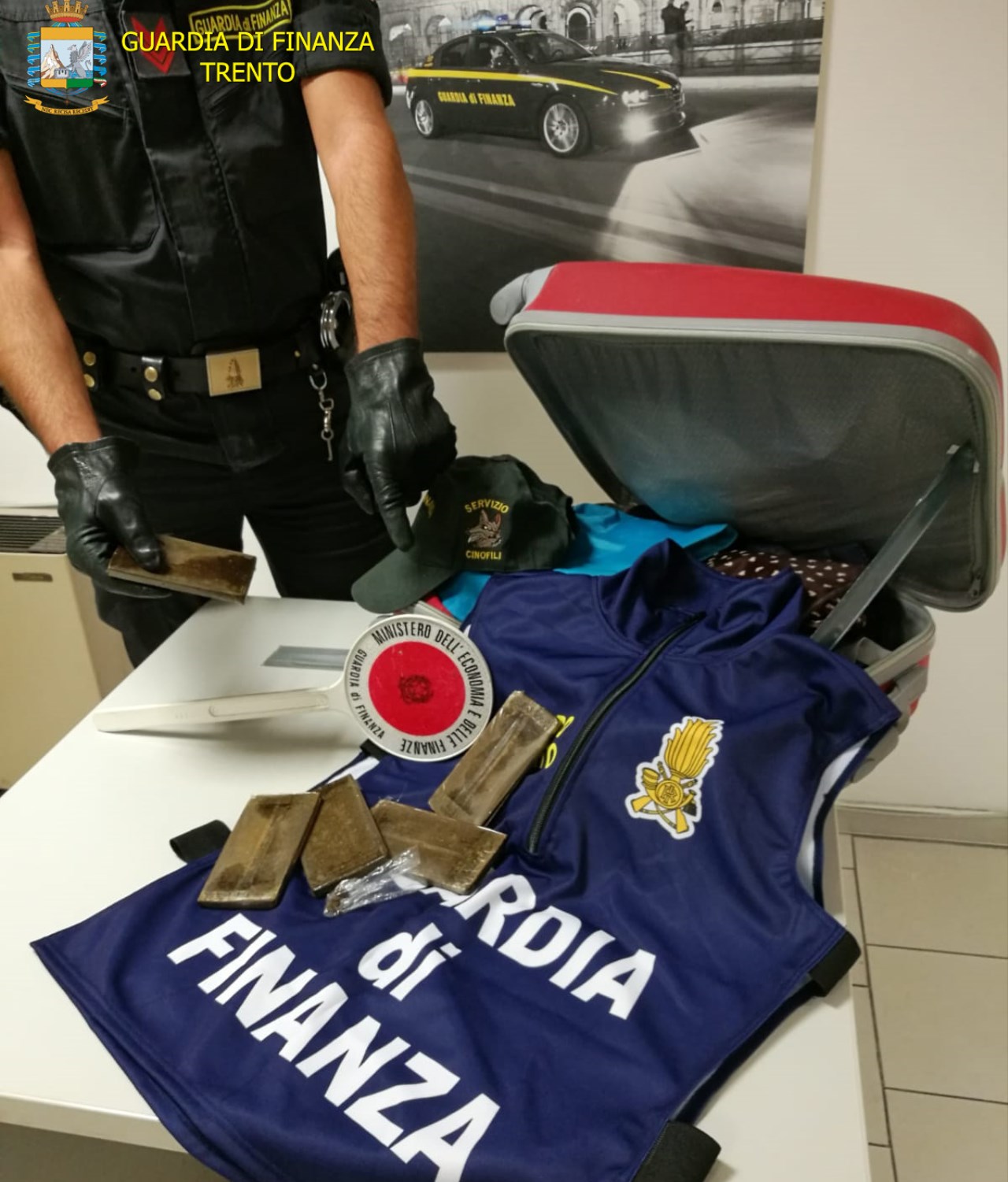 TRENTO. LA DROGA CORRE SUL BUS. ARRESTATO UN CORRIERE DI SALERNO. ERA IN VIAGGIO CON MEZZO CHILO DI HASHISH