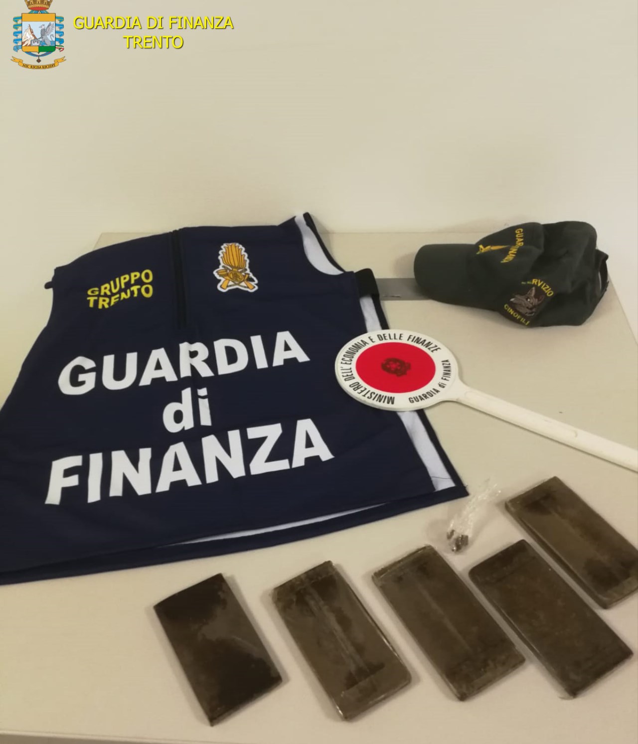 La droga corre sul bus. La Guardia di Finanza di Trento ha sequestrato a Trento mezzo chilo di hashish in panetti e arrestato un corriere, originario di Salerno. Durante i controlli su un pullman di una nota società internazionale di trasporto persone a basso costo, che stava effettuando una sosta a Trento nella tratta Milano – Norimberga, il fiuto dei cani antidroga ha immediatamente individuato un trolley nel bagagliaio. All’interno i finanzieri hanno trovato cinque panetti di hashish. La stessa sostanza è stata poi fiutata nella tasca dei pantaloni di uno dei passeggeri. In manette è finito un artigiano di 48 anni. La droga sequestrata avrebbe fruttato 5mila euro. Processato per direttissima, è stato condannato all’obbligo di dimora nel proprio paese natale, con l’obbligo di firma. (fm) (Foto: Gdf)
