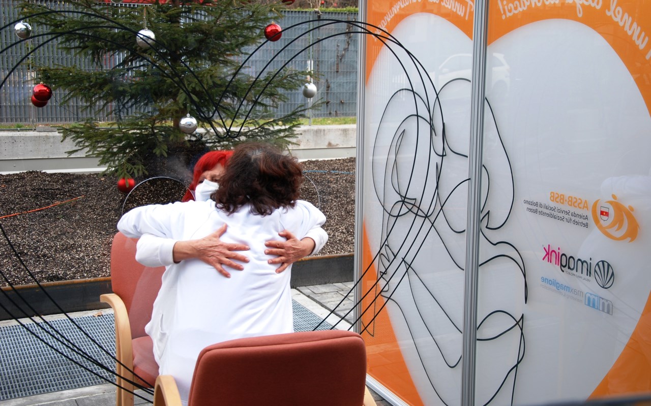 Nelle Rsa bolzanine arrivano i tunnel degli abbracci tra parenti ed ospiti per dare più conforto alle persone anziane Stamane negli spazi esterni della residenza per anziani “Villa Europa” di via Milano l’Assessore alle Politiche Sociali del Comune di Bolzano, Juri Andriollo e la direttrice generale di ASSB Liliana di Fede, hanno presento i “Tunnel degli abbracci”. Si tratta di 10 postazioni in plexiglas, quattro delle quali donate alle residenze per anziani gestite da ASSB da due aziende private bolzanine. Non appena possibile, all’atto della riapertura delle residenze alle visite di famigliari e parenti, queste postazioni consentiranno un primo contatto fisico con gli ospiti in massima sicurezza. [mda]
