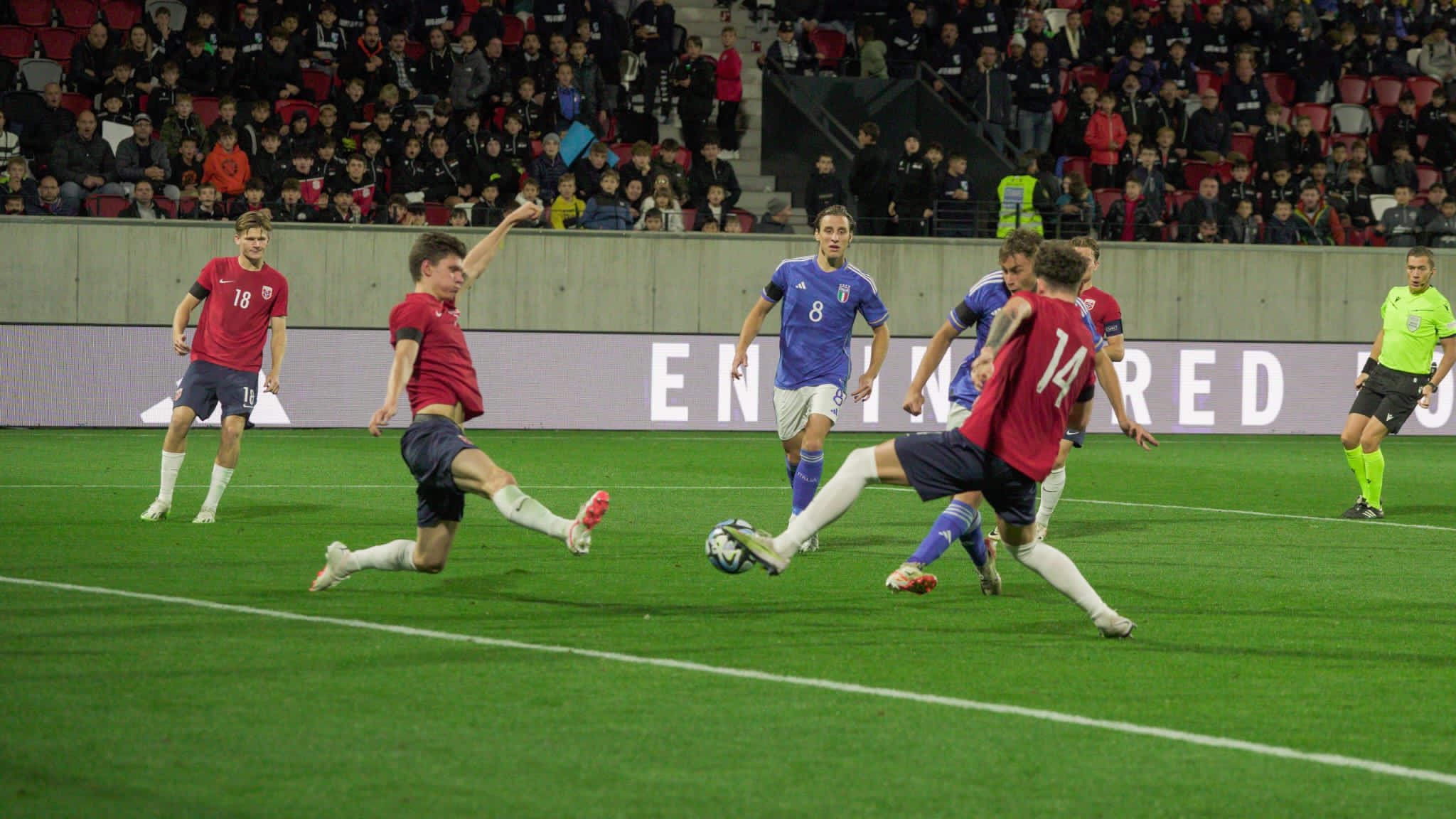 Ripresa che si apre con il raddoppio a freddo dell’Italia dopo 22 secondi con Esposito che riceve una palla filtrata sotto porta e di prima intenzione insacca. Doccia fredda per la formazione scandinava che fatica a ritrovare la lucidità per mettere in difficoltà questa Italia. Al 20′ della ripresa Norvegia che si fa pericolossisima con un tiro ad incorciare che lambisce il palo di Hansen con il portiere azzurro Desplanches che tocca la palla con le punta delle dita mettendo providenzialmente in corner. Italia che a questo punto controlla facilmente il match e porta a casa questo meritato successo, con l’ultima occasione per il 3-0 sui piedi di Oristanio che non si concretizza grazie ad una prodezza del portiere norvegese che ci mette i pugni deviando in corner.