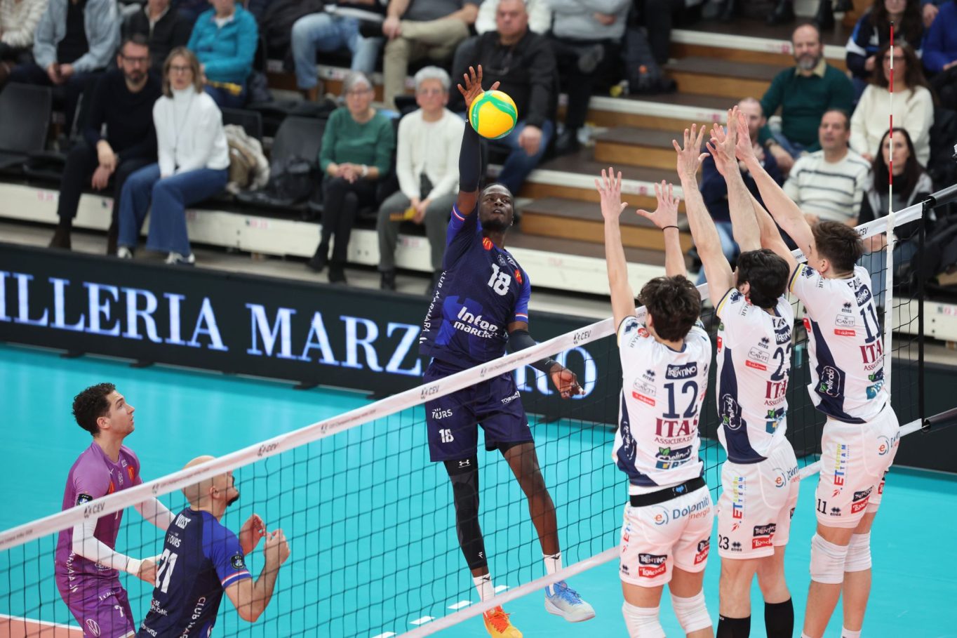 Il ritorno alla BTS Arena di Trento dopo due impegni in trasferta ed altrettante sconfitte rilancia le quotazioni continentali della Trentino Itas. Ieri sera, di fronte al proprio pubblico, la formazione Campione d’Italia ha infatti ritrovato la vittoria, imponendo sui francesi del Tours con il risultato di 3-2 al termine di una partita epica, non solo nel punteggio (solo il quarto set non si è concluso con lo scarto minimo fra le due squadre) ma anche nel modo in cui è maturata nel quarto turno della Pool A di 2026 CEV Champions League